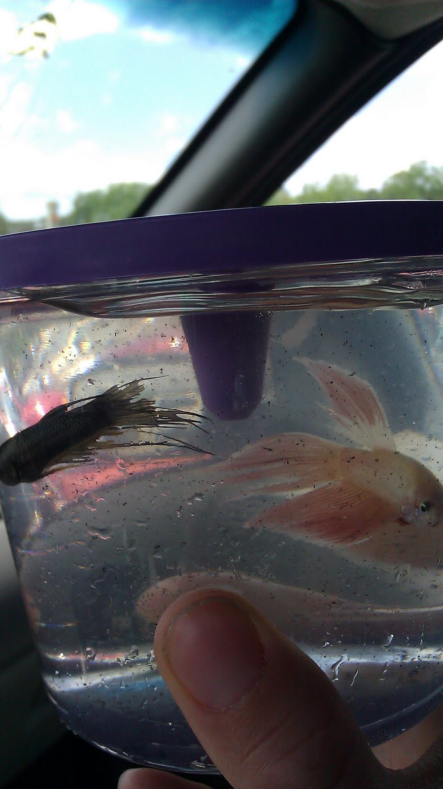 The other day, I was in the store with the babies and we stopped to look at the fish. I was looking at the Betas and I noticed that in one container, there were 2 of them. The first rule of Betas is that you can’t put them together or they will kill each other. One of the fish looked fine, but the other was pretty beat up. His fins had been bitten up to the point of barely having any.