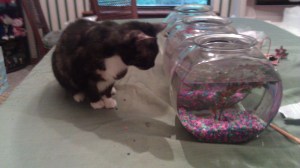 When I was able to finally get someone to help (irritation intended), the sales associate said she couldn’t separate the two fish and that they had come to the store like that. Although, I was sure she could separate them, if she wanted to; I resigned myself to buying both of them, in order to save “Fishy” (the name that Lizzie later gave him.).