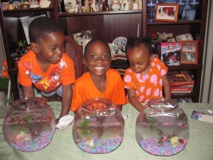 The boys had a great time setting up their fish bowls and Lizzie had a great time talking to her fish, “Fishy.” ( :