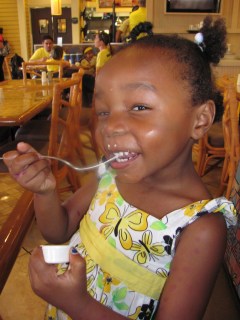 | Lizzie is lucky that they gave her chicken. She refused to cluck. I guess it’s because she preferred the butter. |