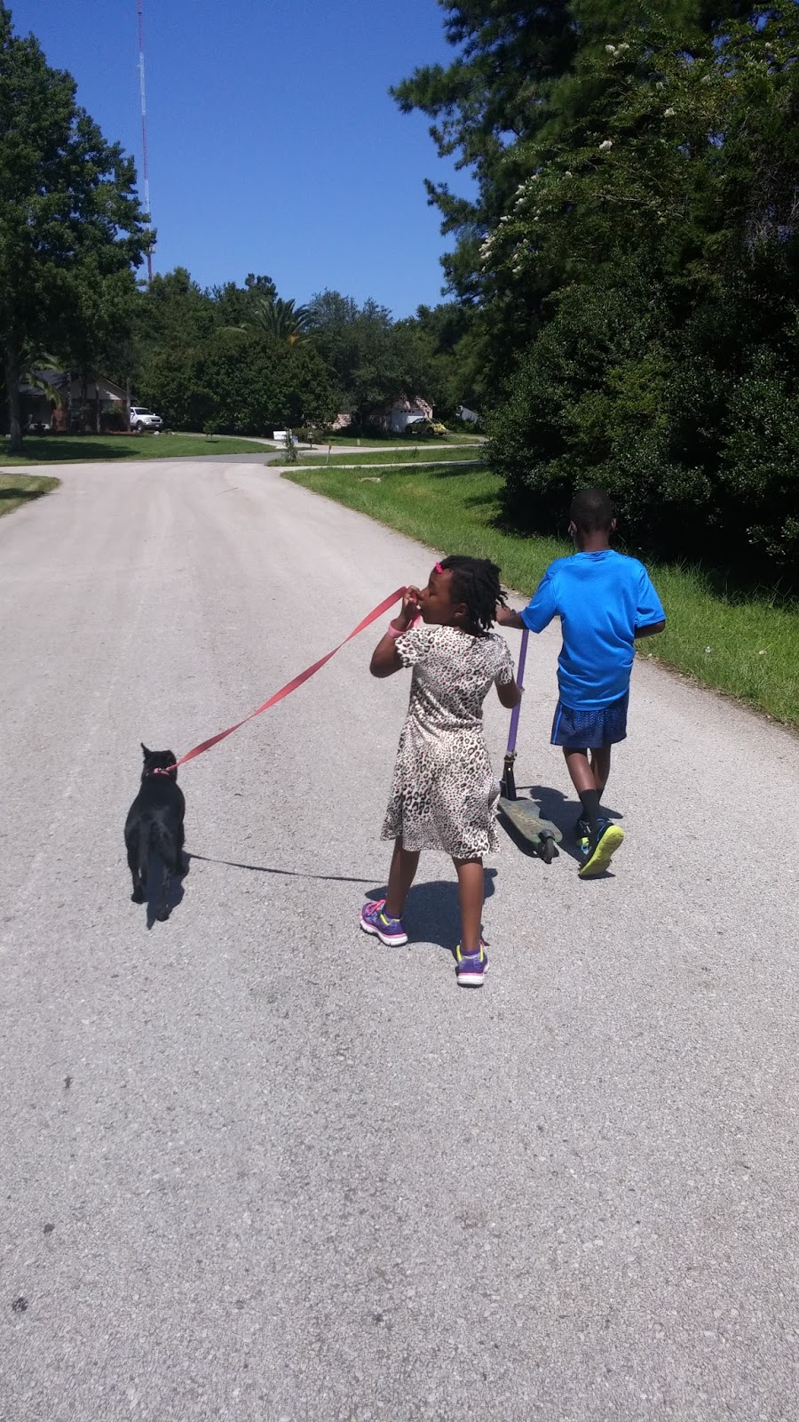 A few days later, William is back in the groove with his classes and Lizzie and Antwan are enjoying another week of summer because their elementary virtual school program doesn’t start until next week. This means I am coming up with work for them. Admittedly, sometimes, that work involves walking a dog. 😉