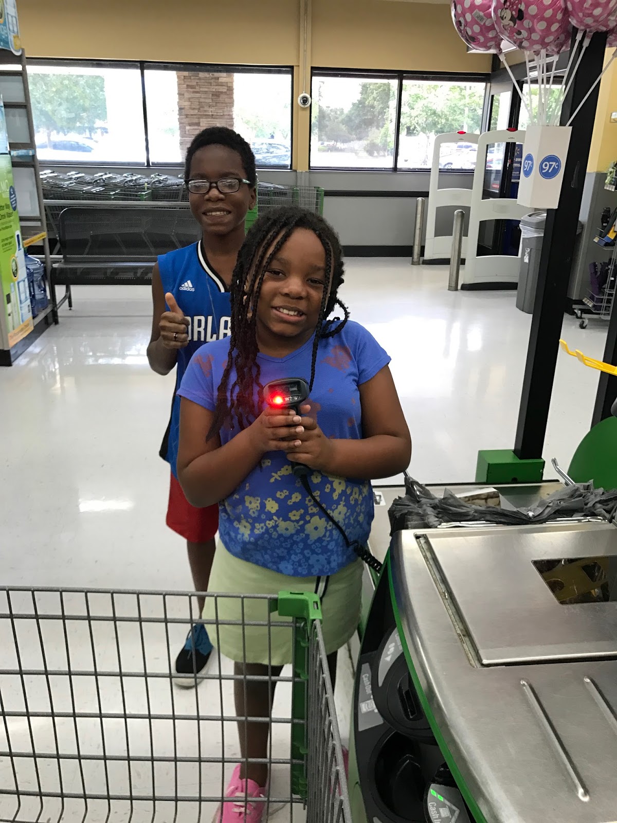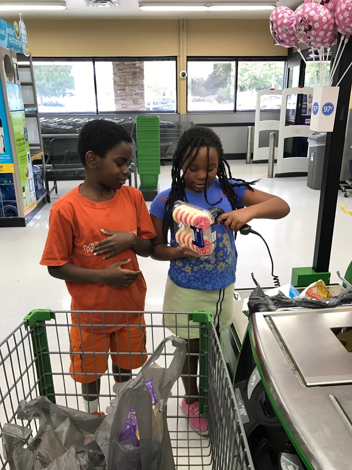 As I was driving home, I did what I usually do. I thought about telling the kids of my adventure. And I realized that they would have a different perspective on the whole situation. They would think it was awesome. Especially since there was also a new corded scanner. You know, so we could scan our cat food and 24 can Mountain Dew without taking them out of the cart. That, I like, by the way. But, by the time I got home, I was in the throes of trying to get them settled into bed and didn’t remember to tell them of these exciting and depressing changes. Until we went back to the store.