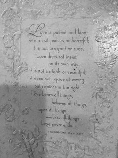 I debated whether to tell the kids why it was there. Honestly, I was afraid that William would use it against me when I inevitably lost my patience. But, still I did feel more patient. And I even obnoxiously start reciting the whole verse (or what I remembered of it) when Antwan and William were bickering about something on the xbox. They half paid attention but I would be lying if I said that they stopped arguing and gave each other a big hug! But, hey, it did slow them down a bit while they tried to figure out what the heck I was doing and they dropped the topic a few minutes later so that’s something!
