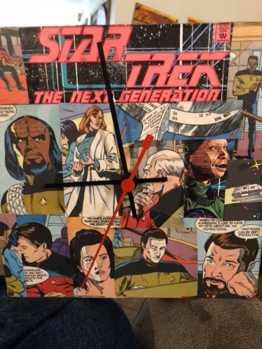 As evidenced by the Superman coffee table, Batman and Captain America end tables, Teen Titan coasters and canvas (that less geeky people might paint on), Doctor Who storage box, Scarlet Witch and Vision lamp shade, and Star Trek clock that currently reside in my living room. 🙂